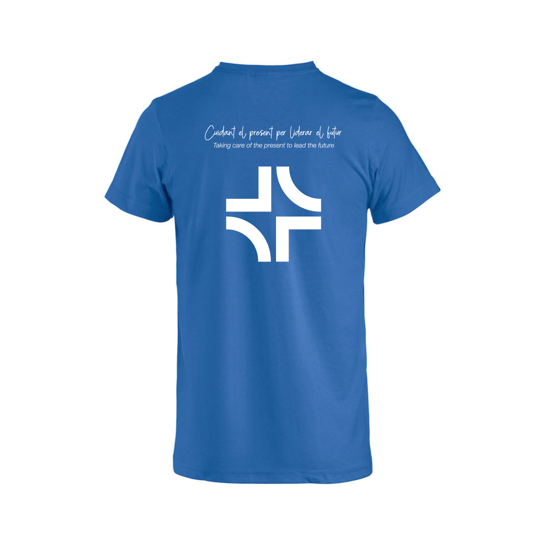 Camiseta de manga corta, color azul royal unisex, con corte entallado, canalé en cuello y tapeta en espalda. Con marcaje en pecho y espalda de ESIMAR.